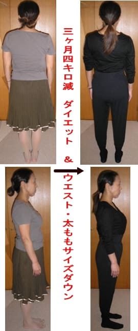 正しい姿勢をつくり、動きを入れることで体重が落ち、太ももサイズダウン、そして腰痛も無くなり、ダイエットに成功されました。